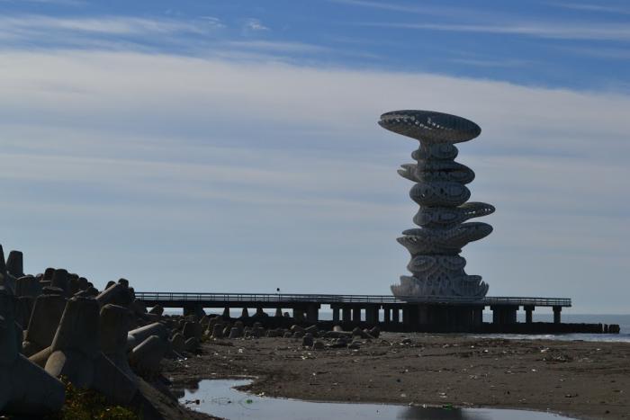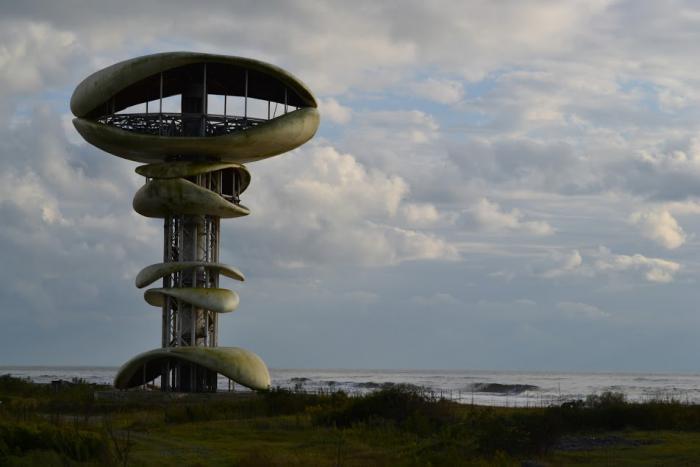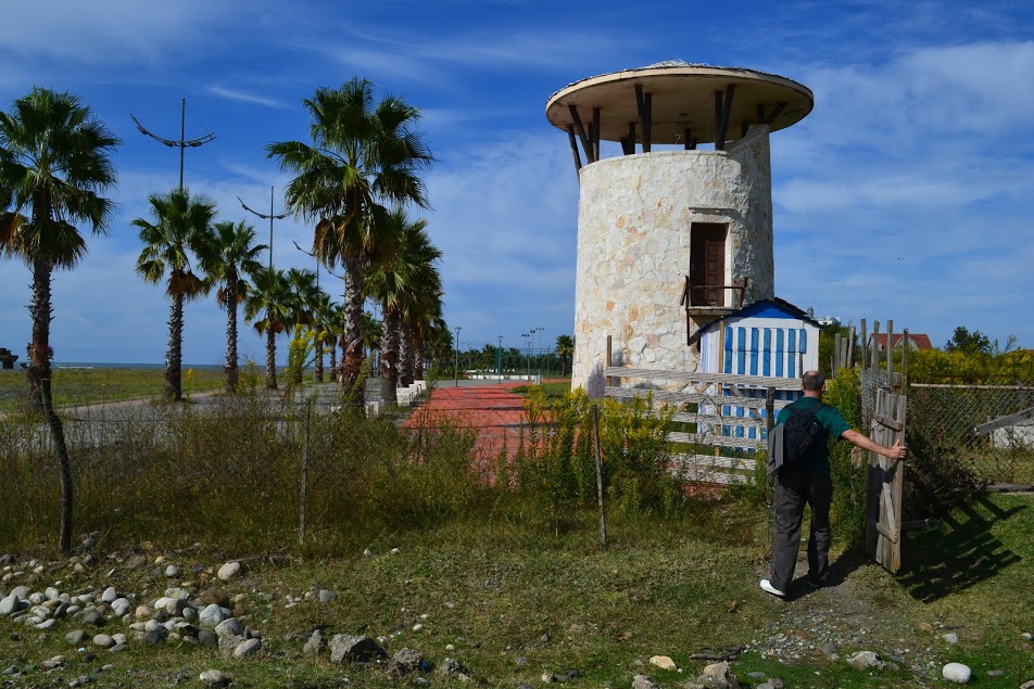 Мы сначала тоже не знали, поэтому назвали эту конструкцию Хыкой. Хыка манила нас к себе. Визуально прикинув расстояние до нее, мы поняли, что идти до нее дольше, чем вчера до границы с Абхазией. Но, ничего с собой поделать не смогли. Не отдавая себе отчета, отправились в путь, планируя для начала просто прогуляться в поселке Анаклиа выйдя за четко очерченные пределы курорта Анаклиа.
