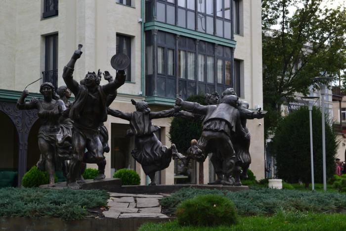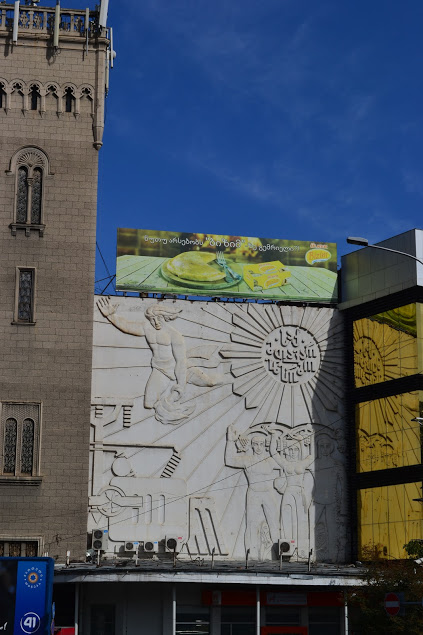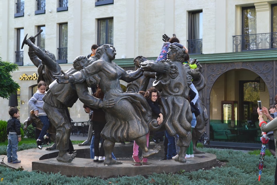 Мне показалось, что в пересчете на одного жителя, количество скульптур в Грузии превышает количество обувных магазинов, уступая разве что количество аптек. Может быть, из-за этого фигуры приходится ставить так плотно друг к другу. На мой взгляд, иногда получается странное сочетание стилей.