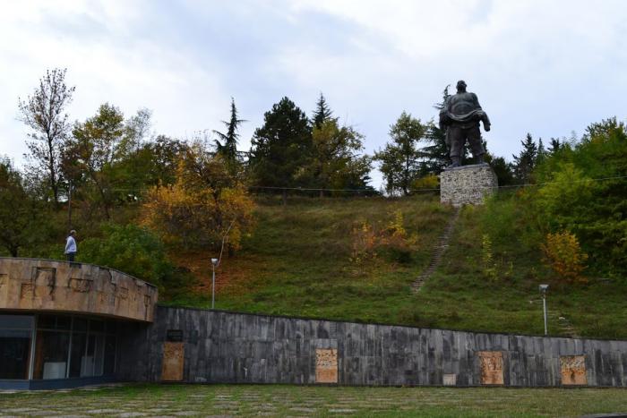 Кстати, от памятника видно единственные в Грузии грязевые вулканы, поднимающие на поверхность «чудодейственную белую глину».