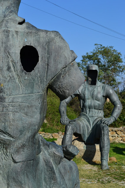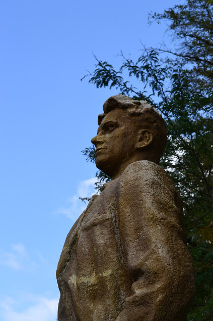 С этим памятников вроде бы попроще. Понятно, что он посвящен человеку, но почему так варварски скульптор отнесся к своей работе? Отдельно стоящая голова на куске гранита никак не помогает мне понять, чем отличился уважаемый гражданин, и за что его увековечили в Сигнахи.