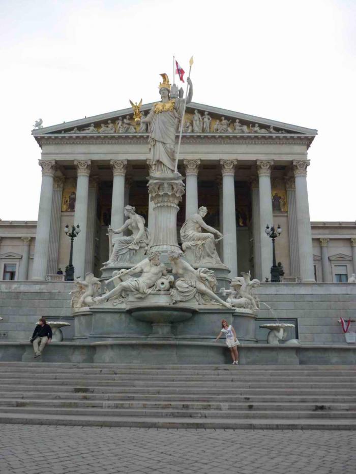 Утром следующего дня мы отправились в столицу Австрии, купив австрийскую виньетку на 10 дней на заправке в Венгрии. В Вене мы 40 минут кружили в поисках бесплатного места для парковки возле нашего отеля, в итоге добились своего, оставив машину в 100 метрах от отеля. Отель находился недалеко от центра, и мы пешком прошлись по всем достопримечательностям, зашли в Венский университет, прокатились на метро и погуляли по аллее роз в народном парке Фольцгартен. Именно эти розы в первую очередь у нас ассоциируются с городом Вена. Всё, что запланировали, мы посмотрели, хотя можно было уделить на этот город времени и больше.