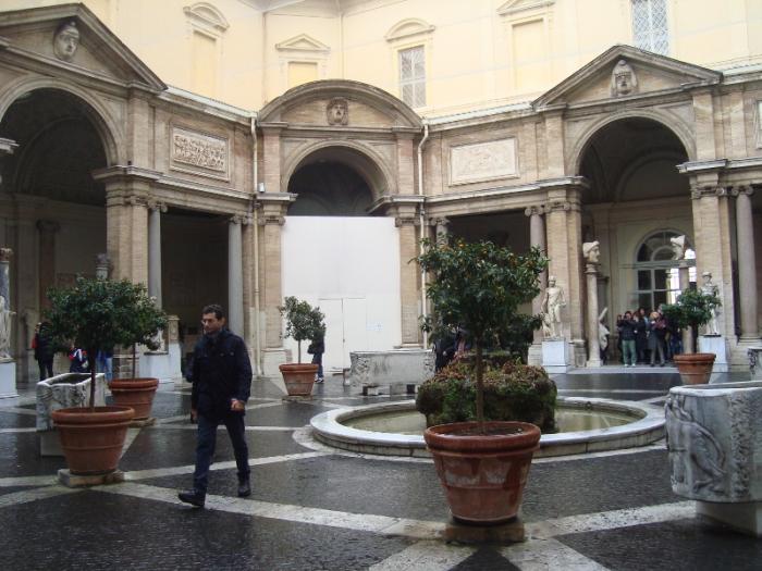 Прогуливаясь дальше мы вновь вышли на Корсо. На правой стороне по ходу находится Палаццо-галерея Дориа-Памфили. Конечно, ни о каких галереях в однодневное посещение Рима никакой речи быть не может. Но я хотела бы остановиться на этой галерее подробнее. В декабре я имела счастье посетить эту галерею буквально в последний вечер перед отъездом. Уже было огромное количество впечатлений от недельного пребывания в Риме. Но выдались пара свободных часа перед фортепианным концертом и я зашла в эту галерею. Уже почти не было посетителей, кассу после меня закрыли. Сначала попадаешь во внутренний дворик галереи. Несмотря на декабрьскую прохладу, вдруг пахнуло такой невероятной свежестью зелени! Запах был совершенно опьяняющий. Когда же пошла по залам галереи, то получила очередной культурный шок: Караваджо, Рафаэль, Тициан, Брейгель, Веласкес и пр. Но главное, меня поразила атмосфера. Во-первых было очень мало народа, я почти все залы обходила одна, во-вторых, в некоторых залах специально был создан полумрак, а то и темнота, освещались только картины. Некоторые галереи были освещены так, что имитировали свет свечей. Тишина, свечи и Караваджо. Так что очень советую посетить эту Галерею тем, кто пробудет в Риме хотя бы несколько дней и планирует прикоснуться к вечному искусству. И, если будет такая возможность, именно вечером, когда на улице уже будет темно.