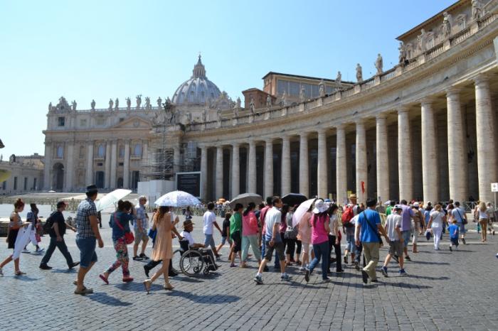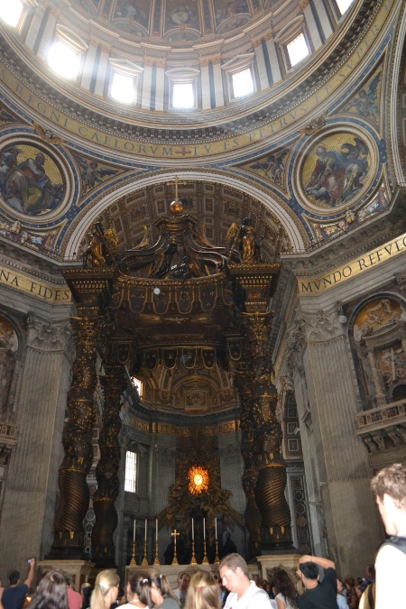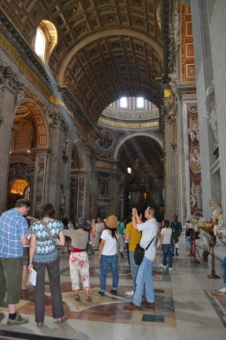 Собор огромен, людей – тьма. К Пьета Микеланжело не подобраться, сплошные экскурсии, очень много русских экскурсий. Мы уже были очень уставшие от прогулки и от сорокоградусной жары. Присесть в соборе негде, чуть прильнешь к какой-нибудь древней статуе или просто к стеночке, сразу делают замечание.