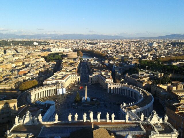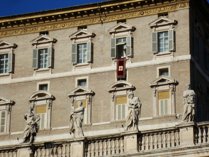 Хочу поделиться своими впечатлениями от декабрьского посещения Ватикана. Разница колоссальная. Накануне я прилетела в Рим, и первое мое утро в Риме было воскресное. По воскресеньям на площади Святого Петра из своего окна вещает Папа Римский. В это солнечное декабрьское утро был еще и мой День рожденье. Я и отправилась в Ватикан. Огромная площадь была заполнена людьми, все ждали. Сначала в окне вывесили красную дорожку, затем вышел Папа Бенедикт XVI.