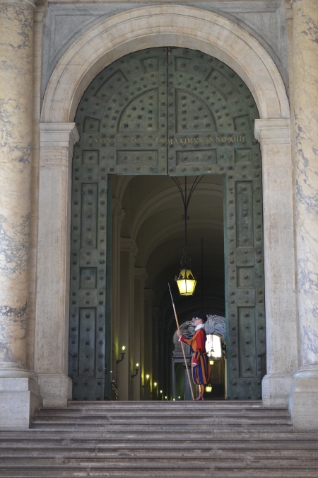 Итак, Ватикан и Собор Святого Петра. Сказать, что все увиденное поражает, не сказать ничего. Чтобы попасть на территорию Ватикана, надо выстоять просто чудовищную очередь, но которая движется на удивление быстро. Обычная процедура контроля (металлоискатель, проверка сумочек), паспорт не спрашивают. Вся эта змеящаяся огромная толпа всасывается в Собор.