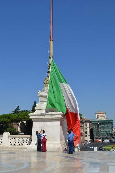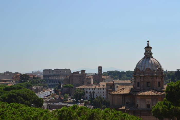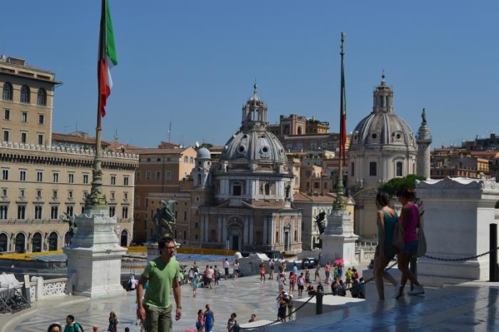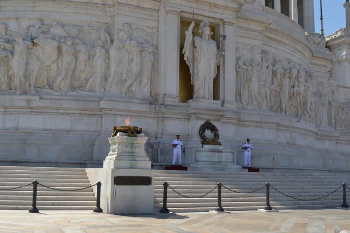 Итак, площадь Венеции (piazza Venezia). Бесспорно, громада Алтаря Отечества производит впечатление. Возможно я неправа, но мне он показался чем-то инородным, каким-то сталинским. Здесь же могила неизвестному солдату, памятник королю Виктору Эмануилу II. Можно на лифте взобраться на смотровую площадку. Но мы этого делать не стали, виды и так были замечательные.