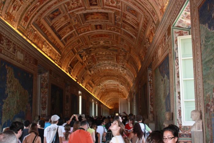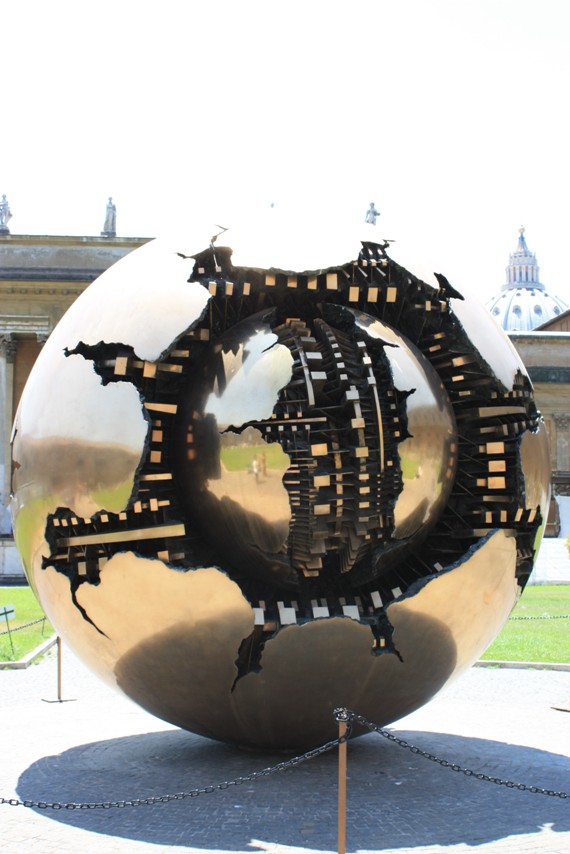 Экскурсию не брали, т.к. даже БЕЗ гида бродили по бесконечным коридорам часа 2, а уж группы с экскурсоводами вообще не представляю, во сколько от туда выходят. Если честно, то кроме папского дворика с огромным шариком и галереи с гобеленами, мы особо не впечатлились подарками Папам Римским от «обожателей».