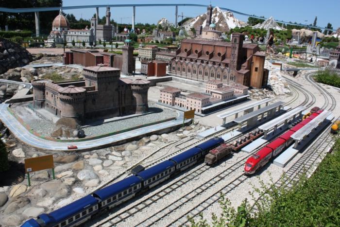 С детьми, да и без детей рекомендую съездить в парк “ Italy in Miniature”. 8км от Римини (Via Popilia 239 47922 Rimini). Все достопримечательности Италии и мира в миниатюре. Плюс инсталляция Венеции с каналом, по которому плывешь на лодочке, плюющиеся фонтаны, дворик с кричащими из окон итальянскими женщинами…Минипарк с динозавриками. Монорельсовая дорога на небольшой высоте объезжает весь парк.