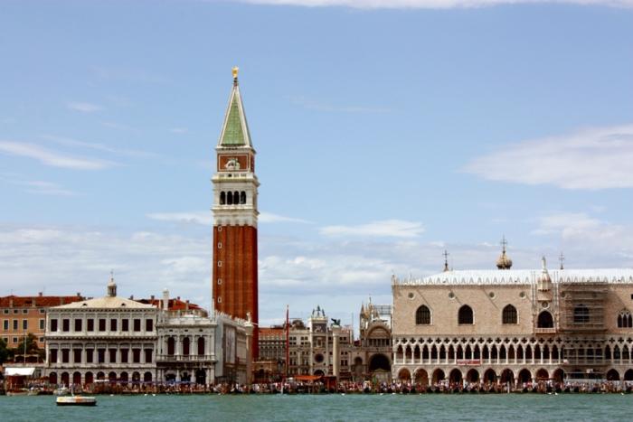 На башню нужно взобраться, чтобы увидеть всю Венецию с высоты птичьего полета. Пусть очередь вас не пугает – проходит достаточно быстро. Подъем на лифте. По деньгам — уже не помню. Но не смертельно.