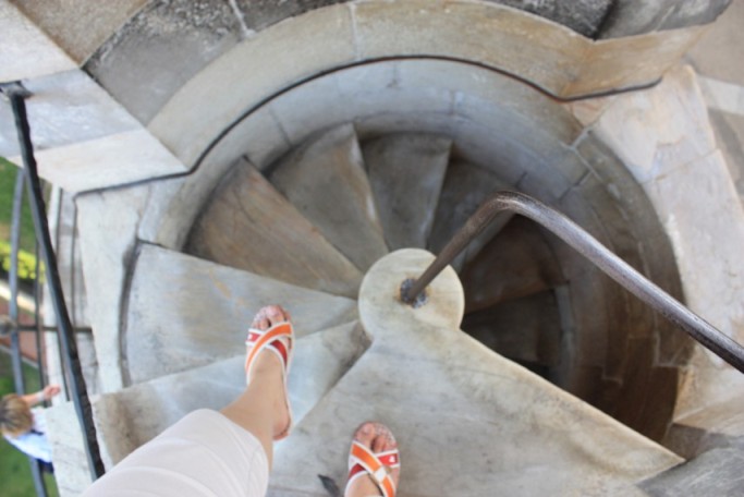 От Флоренции до Пизы 1,5 часа и где-то 90км. Что смотреть – башню. Но имейте в виду, там пешком в основном по внутренним лестницам подниматься около 300 ступенек. На самом верху это уже почти узкий лаз. Пускают по времени (каждый 30 минут), набирая группы по несколько человек. Можно купить билет заранее до начала «сеанса». Работают с 9.00 до 18.00. Дочку удалось пристроить на последний заход в 17.30. Стоило 20 Евро для взрослых. Мы не лазили, а просто ждали на травке внизу. Рядом собор. Посмотреть можно, но не критично, если были в Риме и Флоренции.