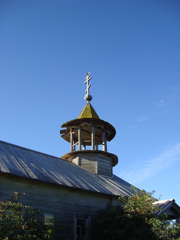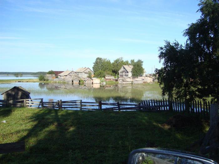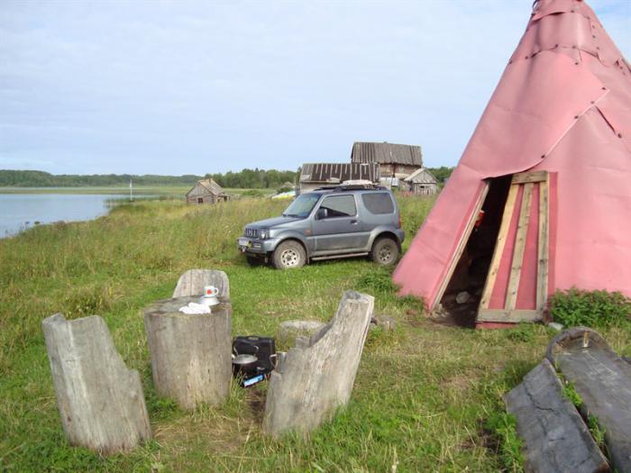 Из МедГоры асфальт переходит постепенно в асфальт с колдобинами, затем в грейдер. За Вел.Нивой свернул налево. В деревне Поля деревянная церковь, в Типиницах часовня, в Усть Яндоме церковь. Во все можно зайти, подняться на колокольню. Дорога стала хуже от Типиниц до Усть Яндомы. Усть Яндома как бы состоит из двух частей. Первый поворот налево — к деревянной церкви. Второй поворот налево — стоит чум и 3-4 дома. Познакомился с хозяевами — Виктор Павлович с супругой. Приняли радушно «Ночевать можно в новом доме или в чуме, где пожелаешь». Я выбрал у чума в машине, т.к. там у меня все приспособлено.