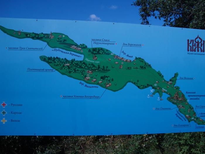 Основные цели: оз. Пизанец, р.Сонго, гора Воттоваара, д. Усть Яндома, остров Колгостров, д. Пегрема, остров Кижи, мыс Андомский