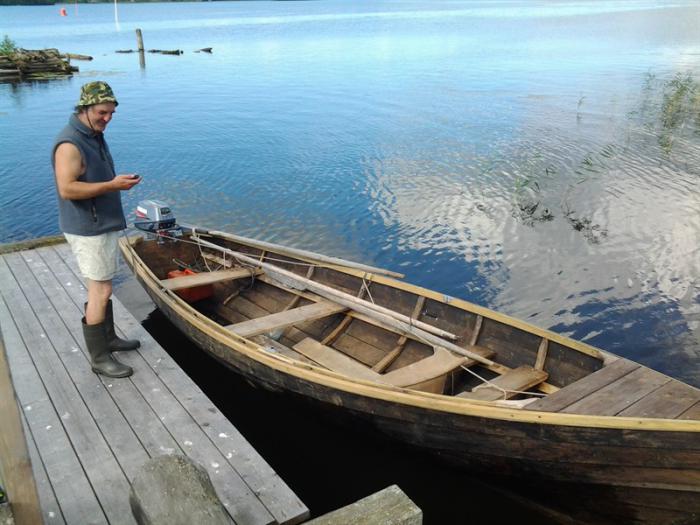 В итоге этот широкий грейдер заканчивается метрах в пятистах от Онеги в районе д. Оятевщины. Оставляю машину на берегу, звоню Андрею Павловичу(помощь с переправой +7(960)212-8725) Встречаемся, он перевозит меня на о. Кижи на деревянной лодке с мотором. Оказывается, эту лодку кижанку он сделал сам, и в этом году на Кижской регате победил на ней в классе весельных лодок.