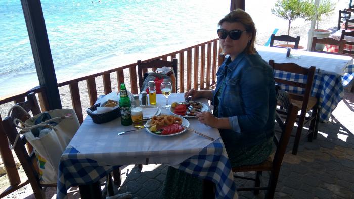 Но, когда к нему причалил кораблик и оттуда вывалилась толпа туристов из Агиас Николауса, которые прибыли сюда на пикничок, мы спешно покинули это уютное местечко.