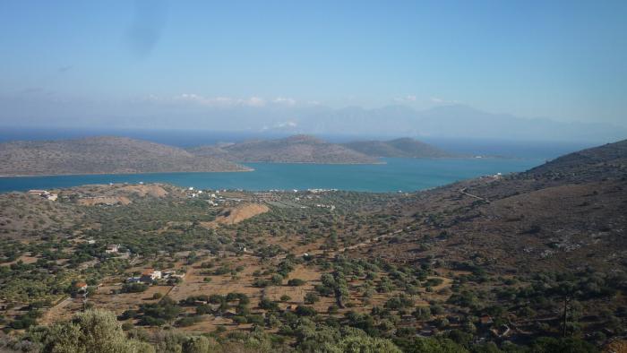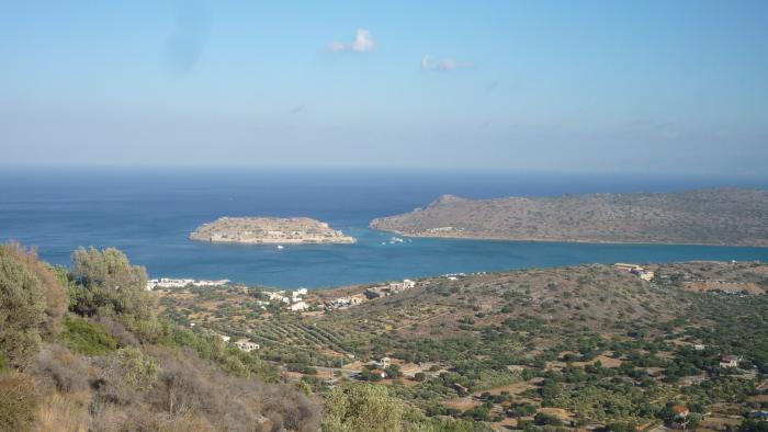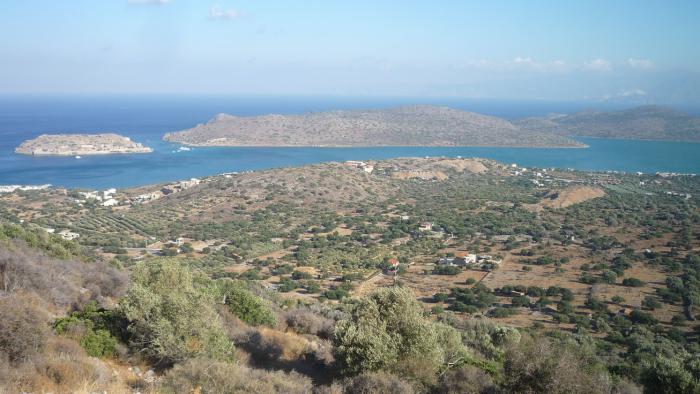 По совету хозяйки, поехали обедать в горную деревушку в 15 км от Элунды с великолепными видами на бухту и остров Спиналунга с его знаменитой крепостью прокаженных.