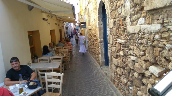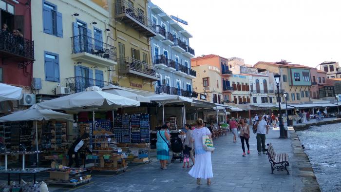 Чем запомнилась Ханья? Узкими улочками старого города, уютным городским пляжем, разноязыкими шумными толпами туристов, в основном из Италии-интересно, чего им не хватает на своих курортах Адриатики? и, пожалуй, экстравагантным зазывалой одного из ресторанчиков на набережной, который неустанно повторял одну и ту же фразу, дефилируя между столиками:«Rakia-connecting people». И в этом с ним трудно поспорить!