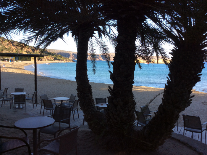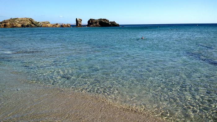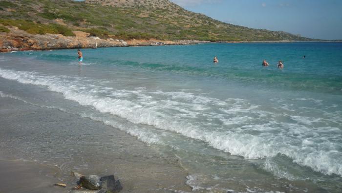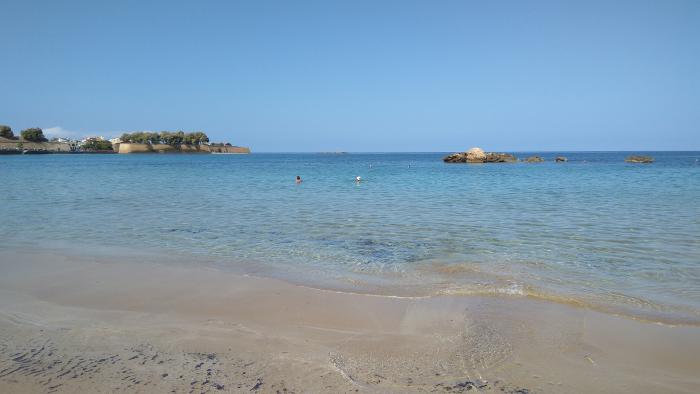 Такое впечатление, что все отдыхающие слиняли на остров Крисси, что в часе плавания от города, на пароходике, который битком забитый как раз отплывал на наших глазах в невозвратную даль. А местные жители еще изволили почивать. Короче, на пляже, кроме нас еще оказалось 2 русских пары, мама с дочкой из Чехии и несколько престарелых немцев. Такого спокойного открытого моря (именно открытого, а не какой-нибудь заливчик, как в Элунде), я больше на острове не видел. Все дело в том, что во время всего нашего пребывания на острове дул ветер с Европы, т.е. с севера, и, соответственно, южная часть острова оказалась с подветренной стороны.