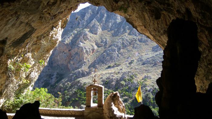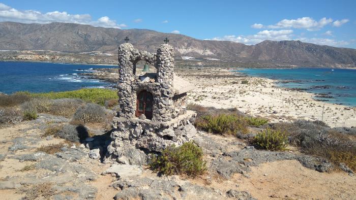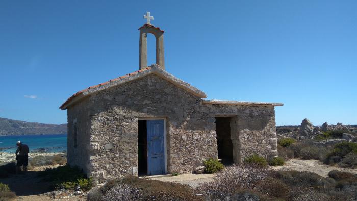Последний полноценный день на западе острова и возникла дилемма: Балос или пляж Элафониси. Поскольку поездка на Балос, хотя и ближе, но сопровождалась жестким графиком теплохода, выбор пал в пользу не менее знаменитого пляжа с розовым песком. По дороге обязательная остановка у святой церкви св. Софии, что в пещере.