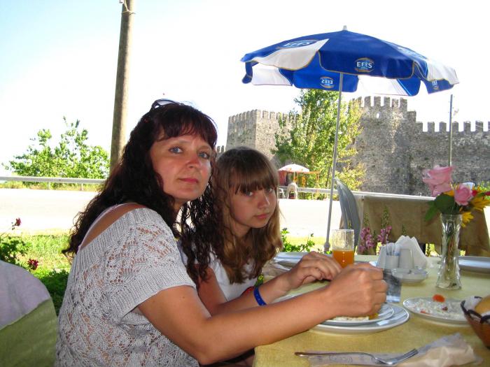 Излазив и осмотрев всю крепость, мы решили перекусить в кафе напротив. Вкусно, но дорого. Видимо на редких туристах хотят сделать всю выручку. Кстати, кроме нас крепость осматривали турецкая парочка и один немец. Мы разговорились с ним, он из Кельна. Был в России, но в Москве.