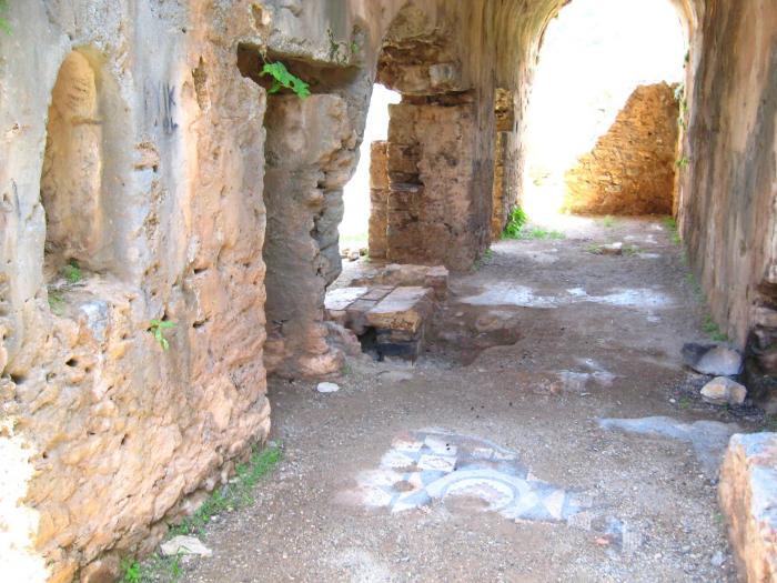 Раздевалка в бане, обратите внимание на мозаику, ей 1600 лет