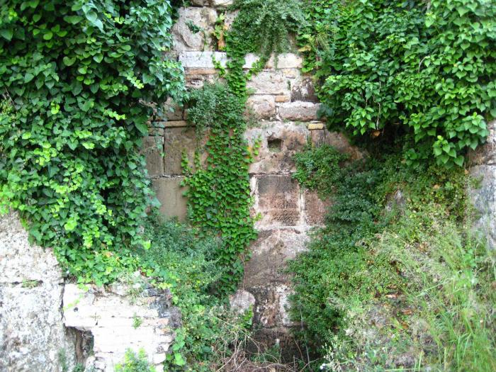 Видно часть крепостной стены, море постепенно разрушает берег и остатки древних построек