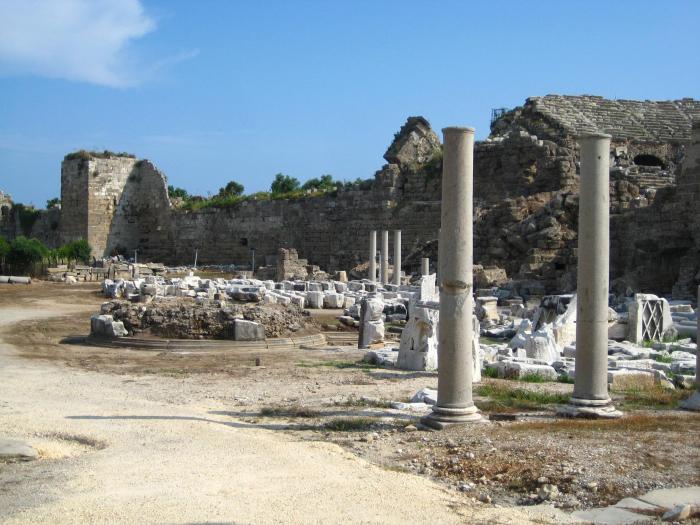 Хотя современный курортный городок Сиде сплошь застроен отелями, благодаря указателям, долго искать исторический центр не пришлось.
