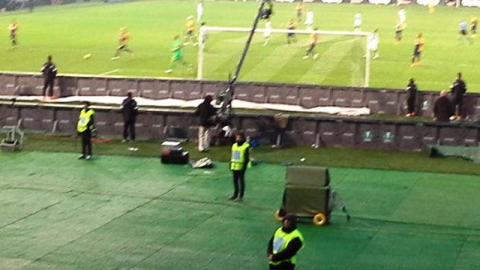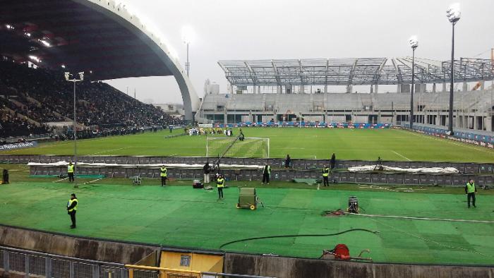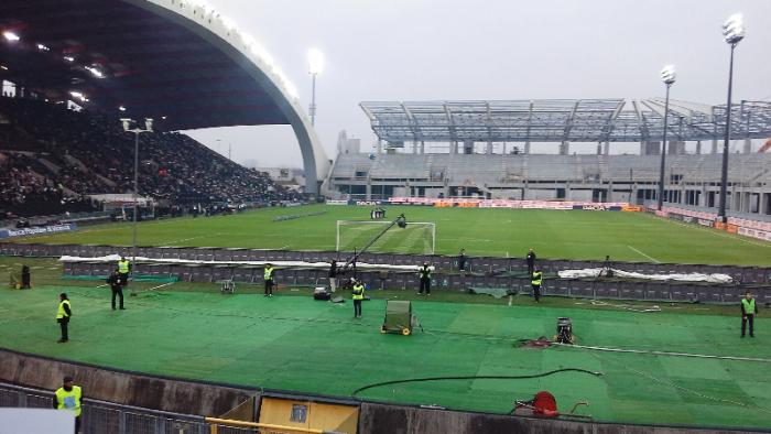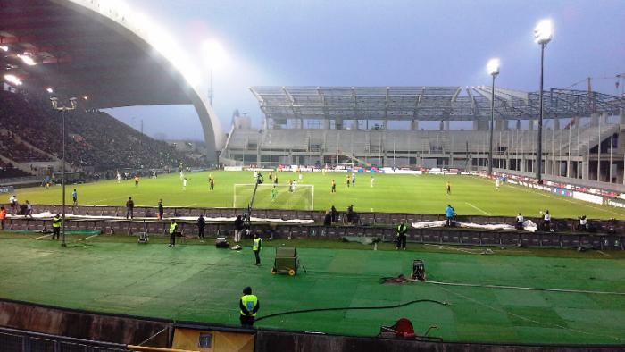 Наконец я вхожу на трибуну и что я вижу?.. Основной костяк фанатов Удинезе с флагами, баннерами расположился на центральной трибуне, а в на той где я разместился есть свободные места и как-то тиффози не видно.Вероятнее всего руководства пошло на встречу фанатам в связи с реконструкцией и предложило фанатскую ложу организовать на центральной трибуне.