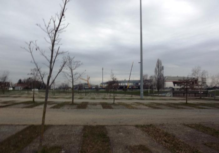Еще вчера подъезжал к стадиону, тогда он выглядел безлюдно вот так.