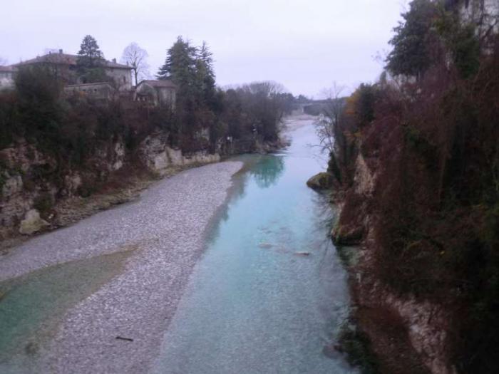 монументальным. Его необычность в том, что две арки моста неодинаковы по ширине (19 и 22 метра)а центральная опора стоит на естественной скале, «вырастающей» прямо из реки.С моста открываются великолепные виды на реку Натисоне.Красивы не только берега, но и само русло реки, ее пороги и тихие заводи. Вода в Натисоне