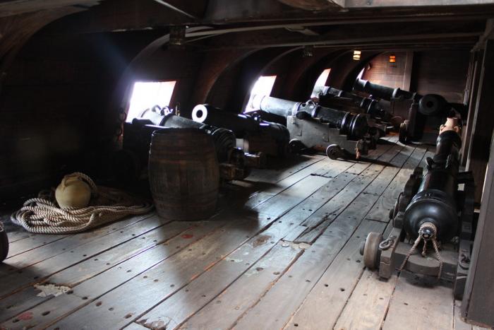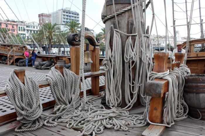 Рядом с аквариумом стоит старинный парусный корабль. Это копия испанского галеона XVII века, построенная для съемок фильма «Пираты» 1989г. Тоже интересно было полазить по его трюмам и побродить по палубе. Как на таких плавали? И ведь еще вокруг света…