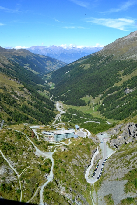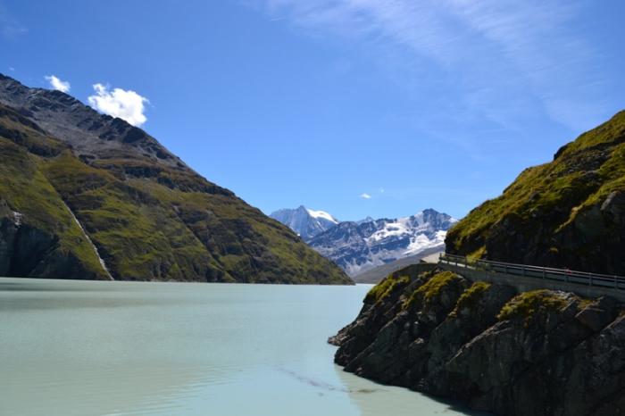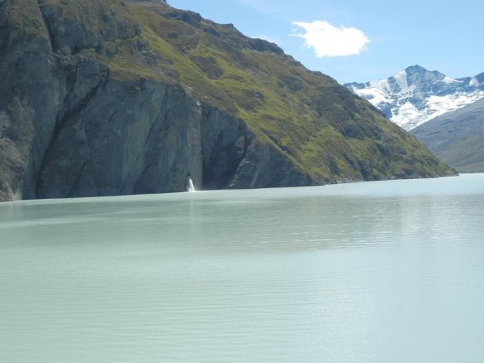 Где-то примерно в этом районе свернули, чтобы проехать в долину Val d'Heremence. Она заканчивается огромной плотиной Гранд-Диксанс (Barrage de la Grande Dixence), расположенной очень высоко над уровнем моря. Таких в мире очень мало. К ней надо доехать до Ле Шаржера (Le Chargeur), затем на канатке 10фр/чел «туда-обратно», только наличными.