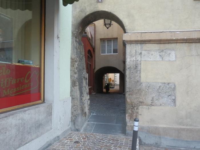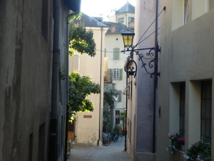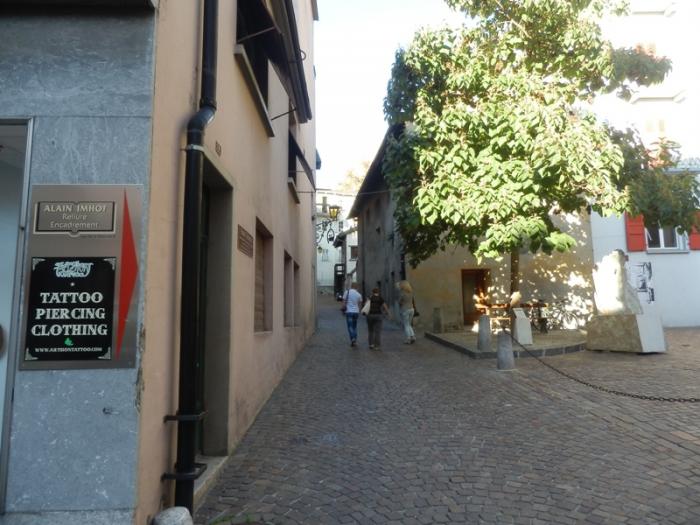 Двигаясь от Place de la Planta по Rue de Lausanne, мы пришли на Rue du Grand-Pont — центральной улице старого города, расположившегося у основания двух холмов с замками.