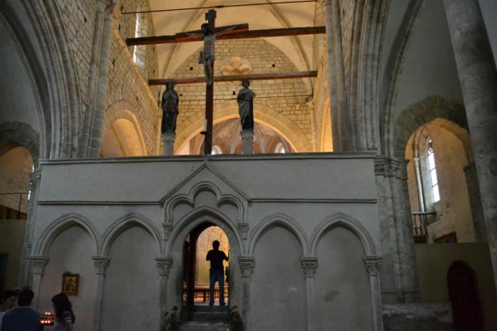 Внутренняя часть церкви разделена на две части стеной. В средние века такое деление было весьма распространенным. На стороне главного алтаря сидели аристократы и духовенство, а обычные люди толпились позади. В 17-м веке римский папа приказал прекратить подобную несправедливость, но в Сьоне духовенство устояло. В результате стену так и не убрали, а просто добавили дверь.