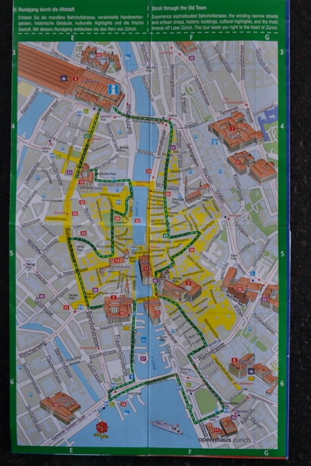 В туристическом офисе взяли карту центра города с обозначенным пешеходным маршрутом. Этого маршрута и придерживались с небольшими отклонениями.