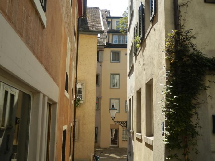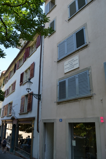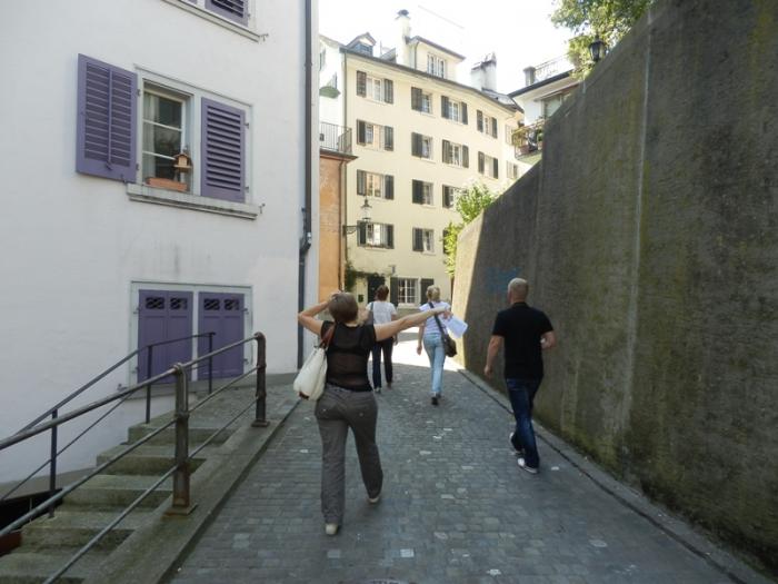Спустившись, мы свернули наверх от собора на узкие мощеные улочки, с двориками со средневековыми фонтанами, с причудливыми магазинчиками и уличными кафе. Сергей уже был с экскурсией в Цюрихе, поэтому вызвался показать нам дом, где перед революцией жил Ленин.