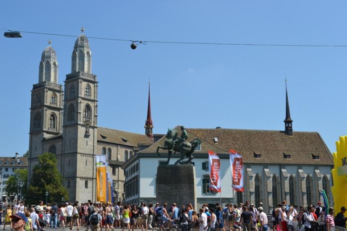 Ее видно из любой части Старого города, она имеет часы с самым большим циферблатом в Европе (диаметр — 8,7м, минутная стрелка — 4м) и ведет свою историю с 8 века. В средние века в невысокой башне с окнами, увенчанной шпилем, проживал сторож. Кроме прочих обязанностей он должен был каждые 15 минут смотреть во все окна, не видно ли где огня. Заметив случай возгорания, он был обязан подать сигнал тревоги и вывесить флаг из окна. Такие ночные дозоры были во многих средневековых городах, деревянные строения которых часто уничтожал огонь. Но, похоже, только в Цюрихе это действительно работало – он никогда не страдал от крупных пожаров.