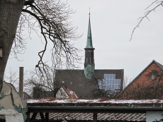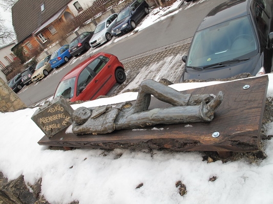 Как и многие немецкие карликовые города, почти безлюден и идеально чист, но есть кое-что и собственное – например, пивоваренный завод в стиле Гауди (коим и заманили нас с пути истинного, автобанного), множество уличных скульптур в духе стрит-арт, а также какой-то непонятной деревянной архитектуры, лично мне напомнившей деревеньку моей двоюродной бабушки под Тулой.