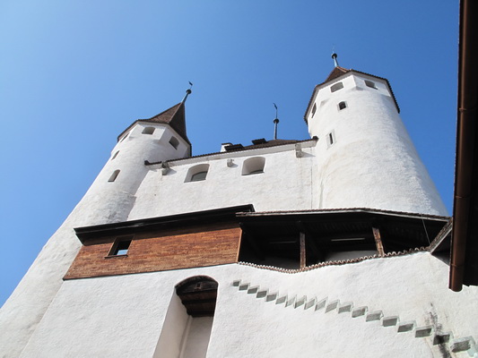 Милый городок — озерная пристань, уставленная десятками яхт, бамбуковый лес на пригорке. Три главных швейцарских «великана» — Мёнх, Эйгер и Юнгфрау, а также более близкие — пирамидальный Низен (Niesen, 2362 м) и Штокхорн (Stockhorn, 2190 м) с плоской вершиной создают неповторимую панораму вокруг. А главным украшением самого города является замок, гордо восседающий на скалистом выступе в центре старого города.
