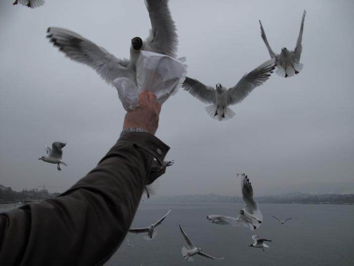 Быть в Швейцарии и не побывать в Цюрихе? Глупо и невозможно! Но что делать в этом пафосном зажиточном городе обычным туристам? Не Верту же в руках вертеть! В общем, обзорная прогулка по городу была бы довольно короткой в силу не суперлетной погоды, но были куплены две булки за 5 франков специально, чтобы продолжить нашу лебединую эпопею, так что мы узнали Цюрих с этой, вполне необычной стороны.