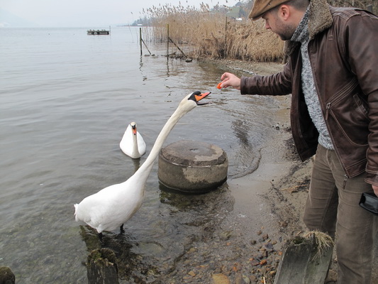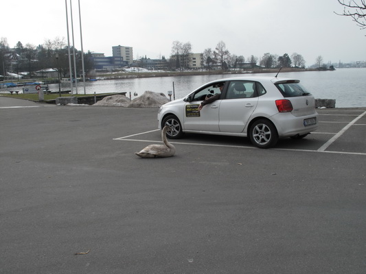 Следующее утро нам подготовило сюрприз – мы встретились с символом своей поездки – швейцарским лебедем.