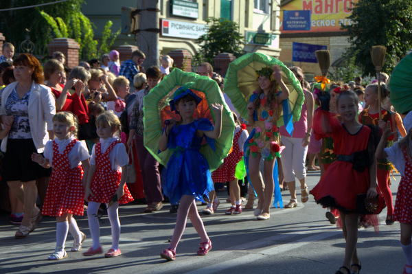 После шествия, как обычно, была торжественная часть, а затем концерт, в котором приняли участие участники Международного фестиваля духовых оркестров «Серебряные трубы Поволжья»., на сцене проводились различные конкурсы. Здесь я уже не фотографировала, так как расстояние было большое и много народа. Около семи вечера мы отправились домой. В общем, праздник нам понравился- колоритный, местный, веселый!