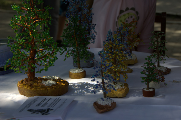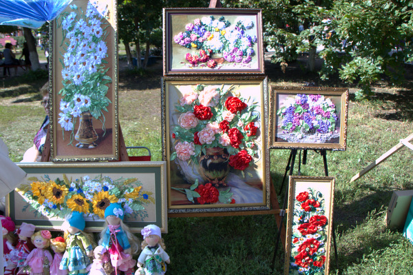 В парке им. Ленина расположилась галерея разнообразных поделок, здесь же вовсю идет концерт.