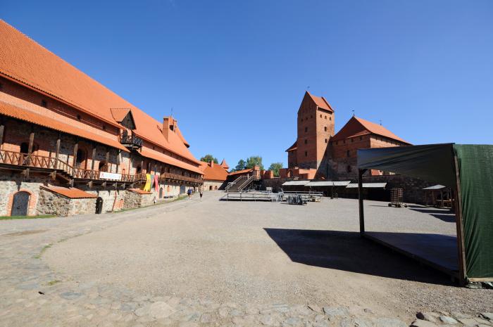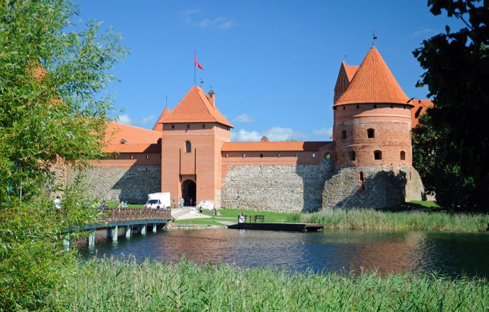 Замок стоит на острове, потому и именуется Трокским Островным. Можно сказать, что новый, построен уже Витовтом внуком Гедемина в 1409 году вместо предыдущего — полуостровного. Считался одной из самых неприступных крепостей в Восточной Европе. При этом был достаточно изыскан, чтобы служить резиденцией великого князя со всеми соответствующими приемами гостей. В середине прошлого столетия был отреставрирован и предполагается, что приведен к первоначальному виду. В качестве исторической справки можно припомнить, что Литва на тот момент была не выговоришь какая большая. От Балтики до Черного моря. Не обошлось без родственных связей и с московскими князьями.