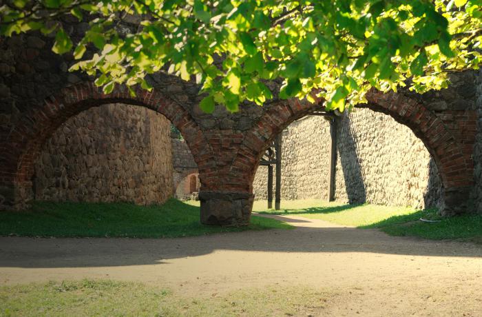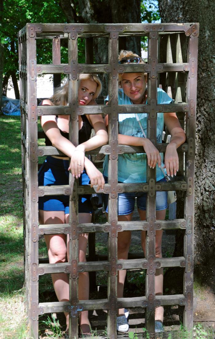 Прощание с Тракаем оказалось в районе полуостровного местного замка. Он построен Кейстутом, отцом Витовта примерно в 1370 году. Слегка подреставрирован и почему-то спокойно пустует. Ни души там не встретили. При том, что поток туристов к его молодому соседу и не думает иссякать. Из интересностей тут старые стены и несколько приспособлений для успешной охоты на средневековых ведьм, которые (в смысле приспособления) были тут же использованы по назначению современными представительницами темных сил.