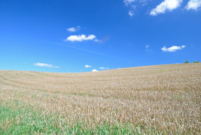 Езды до гостиницы нам было километров десять. Так и вышло, но какими разными они могут быть эти километры. Место прибытия находится на берегу небольшого озера Гилушис. Навигатор осмотрелся и решил, что ехать традиционным асфальтом неинтересно, уже надоело. Можно срезать грунтовкой, которая поначалу таковой не казалась. Поворот вполне естественный, экран прибора рисует нормальную кривую к ночлегу, до которого всего ничего. Когда с нормальной дорожки выкатились в поле, где колея периодически терялась в траве, разворачиваться было уже обидно. При всём при этом, претензий к Еве (нашему гарминовскому навигатору) у нас нет и в помине. Рутинное перемещение превратилось в небольшое приключеньице по живописным окрестностям. Еще и яблоками удалось разжиться.