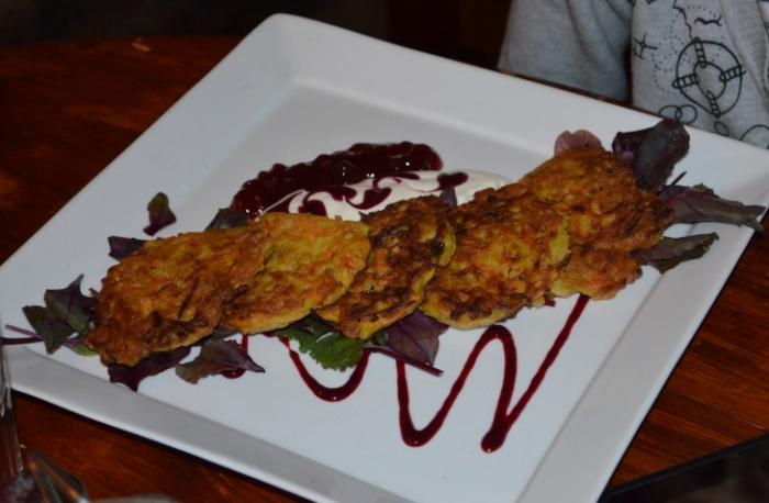 Ммммм, как нам понравилась еда… Картофельные оладья (драники), которые заказал наш сын, там подают со сладким брусничным соусом. Оказалось очень вкусно.