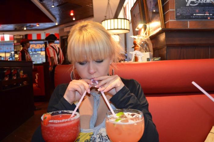 После небольшого шоппинга, который в Риге оказался весьма приятным как по ценам, так и по ассортименту, мы решили зайти во Фрайдис, чтобы насладиться вкусным коктейлем… И девочка-официантка зачем-то нам сообщила о том, что мы пришли в счастливые часы, в связи с чем при покупке «ведра» коктейля второе «ведро» вы получаете абсолютно бесплатно ))) Это магическое заклинание сделало наш вечер )))