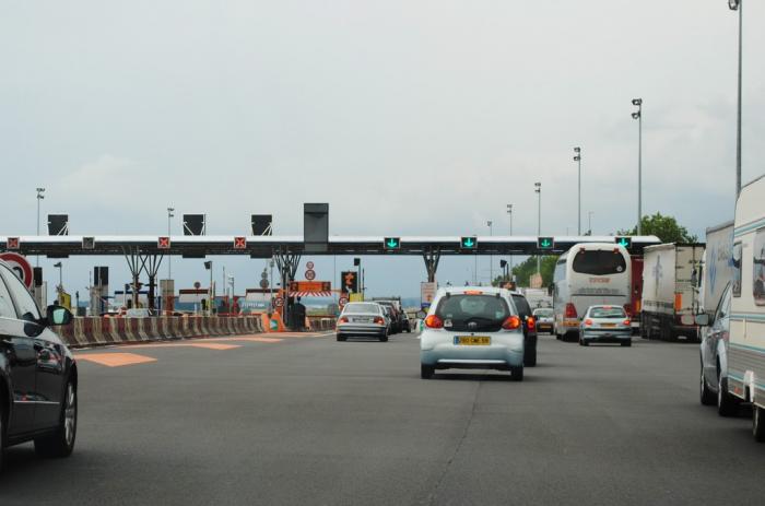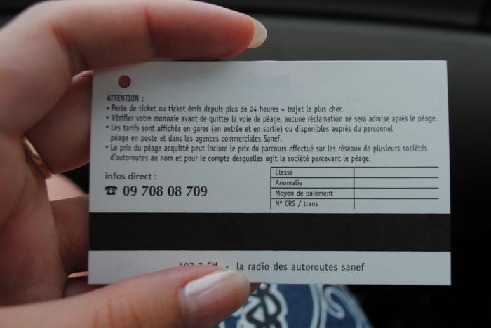 Вот и выезд с платной дороги. Суешь в автомат билетик, потом суешь кредитку. Шлагбаум открывается. Я так волновался, что даже не посмотрел, сколько с меня, и не взял чек. Чек, как потом выяснилось, дается только по требованию (отдельная кнопка).