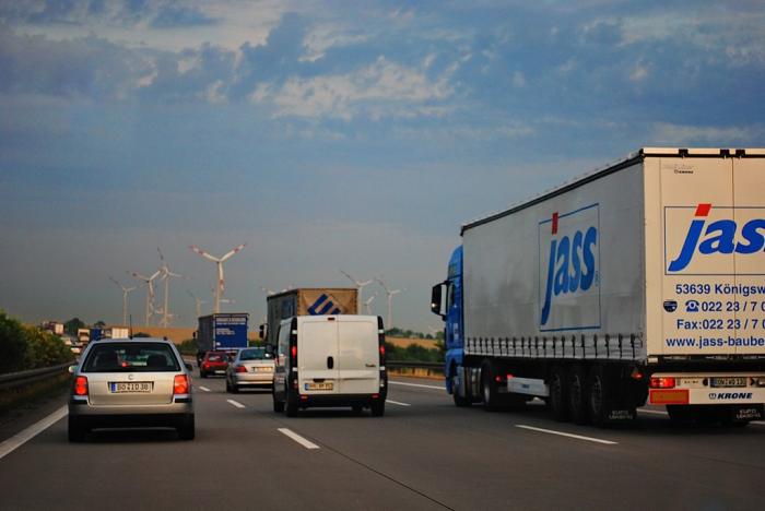 На участках без пробок, мы топили по левому ряду 160 км/час, периодически пропуская местных немцев, которые топили под 200. Скоростные ограничения на немецких автобанах присутствуют только в потенциально опасных местах. А так – езжай, сколько не страшно. Но, чтобы водители особенно не увлекались гонками, вдоль обочин встречаются щиты, на которых изображена девочка, держащая фотографию своих родителей в траурной рамке. Производит просто неизгладимое впечатление. Кстати, рекламы вдоль трасс в Европе нет вообще. Только если социальная. Еще почти сразу обратили внимание на фуры, которые культурно (даже российские) едут паровозиком по правому ряду, изредка перестраиваясь для обгона. И еще, что бросилось в глаза — это огромное количество ветряков.