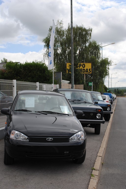 Сервисный центр мы нашли без труда. Смотрим: висят флаги «Lada», и на улице стоят продаются Нивы, и, о чудо — одна лада калина!